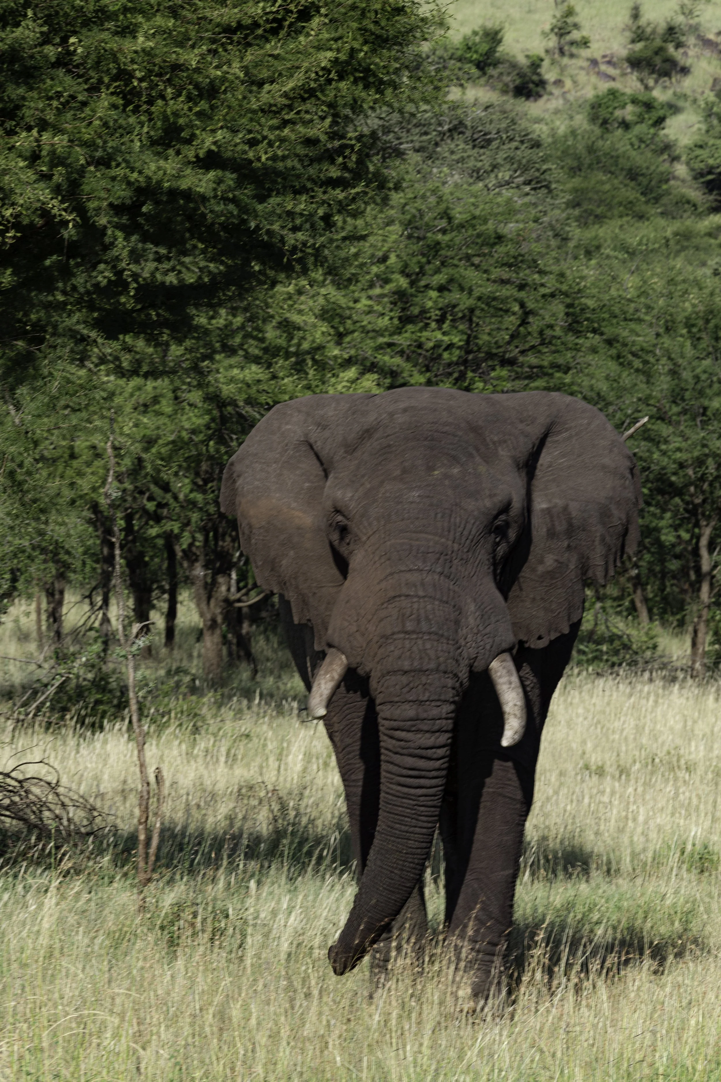 What started out as the usual — stop the jeep, grab a few pics of this huge elephant, nothing much to note beyond his incredible size — shifted in an instant when he caught us in his sights. He lifted his head like a warning: this is my yard, move along. He began to walk toward us, and I said to Anthony, “We need to get out of here!” Then he charged. At 10 frames a second I rattled off thirty to fifty frames, heart pounding with every click, until finally we edged away and the distance between us grew. Only once the jeep rolled on and the elephant faded behind us did I let myself breathe again.