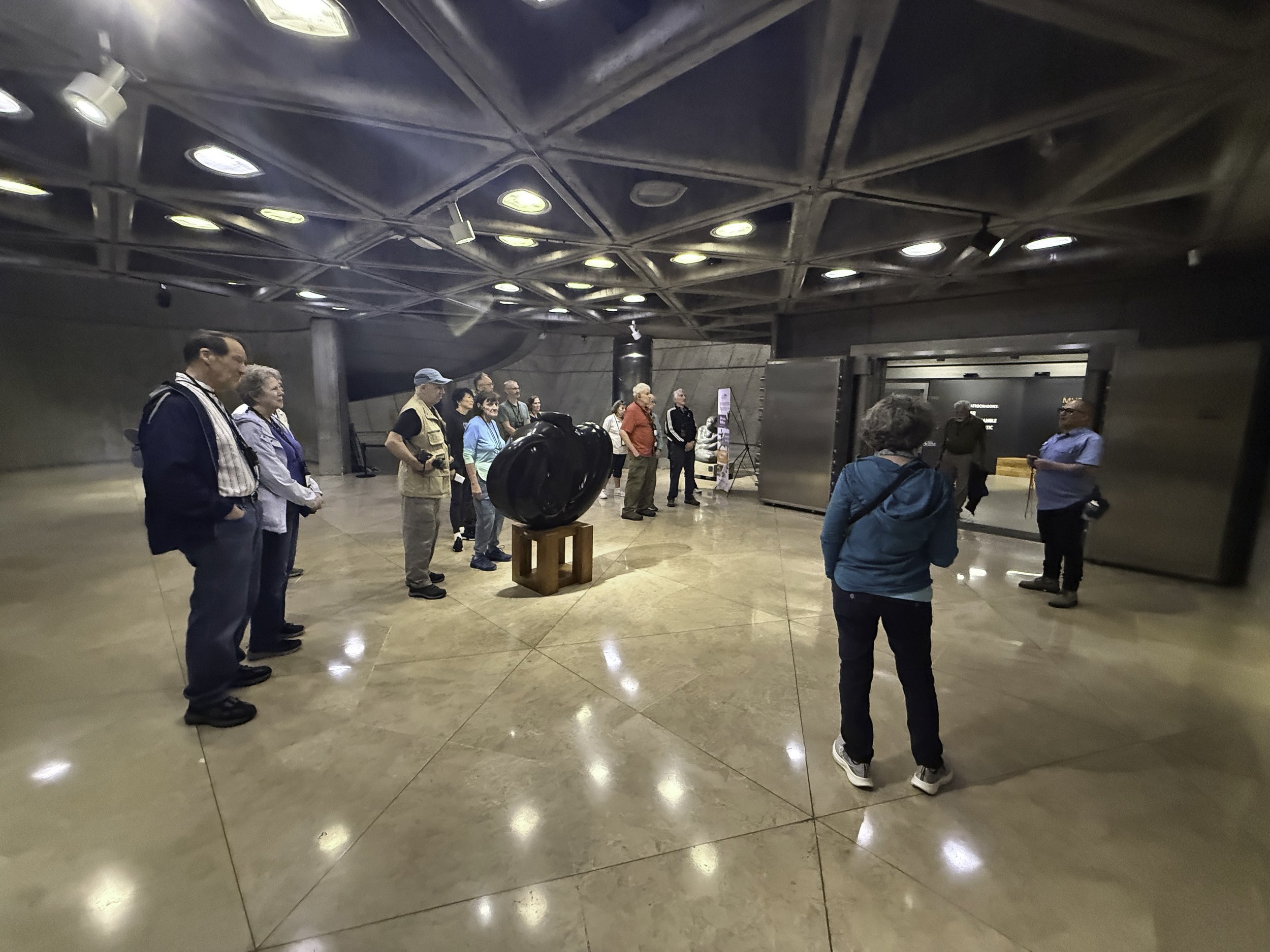 We had a few minutes before the gold museum opened, so we made a short stop at the National Theater. Since we were only stopping for a few minutes, our guide gained entry (a guide’s secret handshake) and led a quick walk through the main foyer, where ornate chandeliers, gilded moldings, and impressive marble staircases hinted at the theater's storied past. Even in that brief span we soaked in the atmosphere—the hushed grandeur, framed portraits, and a stage draped in heavy curtains—enough to feel transported back to a time of opera premieres and glittering galas before we hurried off, tickets in hand, to the next adventure.